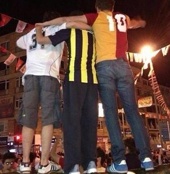 υ.γ: ‘Oταν βλέπεις ενωμένους οπαδούς των Μπεσίκτας, Φενέρμπαχτσε και Γαλατασαράϊ (βλ. φώτο) καταλαβαίνεις ότι εδώ δεν θα το δεις αυτό ούτε στην Δευτέρα Παρουσία!!! Μακάρι να βλέπαμε μαζί σε κοινή πορεία για τα προβλήματα της χώρας μας Ολυμπιακούς, Παναθηναϊκούς, Αρειανούς, Παοκτήδες και Αεκτσήδες… μακάρι…