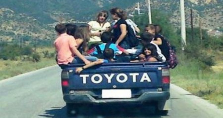 Πώς να τα καταφέρουν άραγε όταν αναγκάζονται να μεταφέρουν τα παιδιά τους στην καρότσα αγροτικού οχήματος, διακινδυνεύοντας την ασφάλεια τους, για να πάνε στο σχολείο;