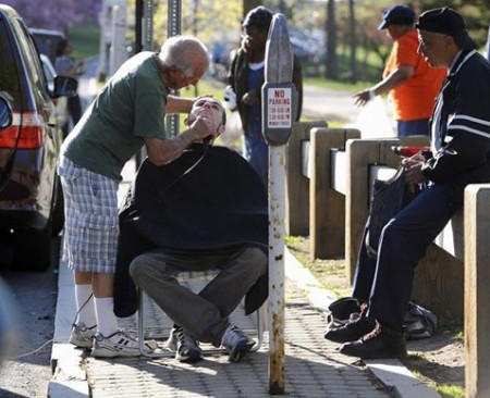 Ο 82χρονος συνταξιούχος κουρέας Anthony Cymerys, γνωστός σε όλους ως ο Joe o Μπαρμπέρης, στήνει κάθε Τετάρτη την καρέκλα του κάτω από μια βελανιδιά στο Bushnell Park του Hartford στο Connecticut για να κουρέψει και να περιποιηθεί τους… πελάτες του: Του άστεγους, μη ευνοημένους ανθρώπους της περιοχής του!
