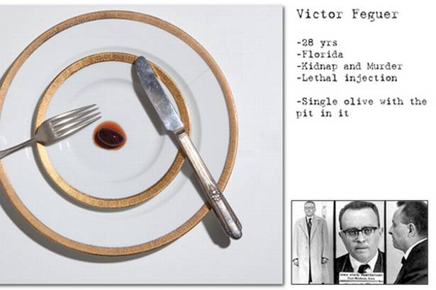Ο Βίκτορ Φουέγκερ από την Φλόριντα, φυλακίστηκε για απαγωγή και δολοφονία και εκτελέστηκε δι’ απαγχονισμού το 1963. Το τελευταίο του γεύμα ήταν μία μόνο ελιά.