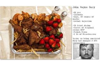 Ο Τζον Γουέιν Γκέισι από το Ιλινόις, ο οποίος εργαζόταν ως κλόουν, είχε καταδικαστεί για βιασμό και 33 δολοφονίες. Εκτελέστηκε με θανατηφόρο ένεση και επέλεξε για τελευταίο γεύμα 12 τηγανητές γαρίδες, ένα κουτί από το KFC, τηγανητές πατάτες και ένα κιλό φράουλες.