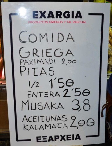Το μαγαζί «Εξάρχεια», το οποίο πουλά παραδοσιακά ελληνικά προϊόντα στη γειτονιά Lavapies της Μαδρίτης έχει κερδίσει τους Ισπανούς, οι οποίοι συρρέουν μαζικά προκειμένου να προμηθευτούν παραδοσιακά μεσσηνιακά προϊόντα όπως ελιές, λάδι παστέλια, παξιμάδια, σύκα, τυριά, τσάι από τον Ταΰγετο, ρίγανη, ενώ μαγειρεύει και παραδοσιακά ελληνικά φαγητά, αναφέρει το Εθνος.