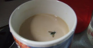 Βγάζει το έντομο και συνεχίζει να πίνει τον καφέ του..