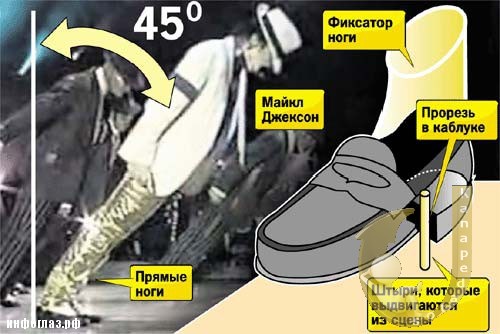 Αποδείχτηκε ότι ο Michael ο ίδιος εφηύρε και κατοχύρωσε ειδικά παπούτσια. Αυτά είχανε ένα αρκετά ψηλό τακούνι. Σε αυτό ακριβώς βρίσκεται η λύση του γρίφου. Εκεί υπήρχε μια τριγωνική σχισμή που έπαιζε το ρόλο μιας κλειδαριάς Σε ένα ορισμένο χρόνο παρουσιάζονταν στη σκηνή μικρές βέργες που έμπαιναν στη σχισμή του τακουνιού και με αυτό τον τρόπο κλείδωναν τα παπούτσια στο έδαφος. Έτσι επέτρεπαν στο Michael και στους χορευτές να πραγματοποιούν αυτή την «εξωγήινη» χορευτική φιγούρα.