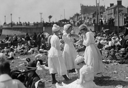 Τα ήθη και τα έθιμα της εποχής δεν επέτρεπαν σε γυναίκες και άντρες να δείξουν τα κάλη τους δημοσίως και έτσι για να δροσιστούν λιγάκι όταν ανέβαιναν οι θερμοκρασίες φορούσαν κάτι… απλό και απέριττο και πήγαιναν να απολαύσουν το μπάνιο τους. Οι εικόνες μπορεί να φαντάζουν αστείες, όμως για τα κοινωνικά δεδομένα της εποχής ίσως ήταν και αρκετά προχωρημένες, αφού το να φανεί λίγο γυναικείο δέρμα ήταν το λιγότερο προκλητικό. Και μετά ήρθε το μπικίνι και δημιουργήθηκε το χάος!
