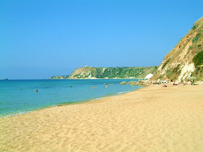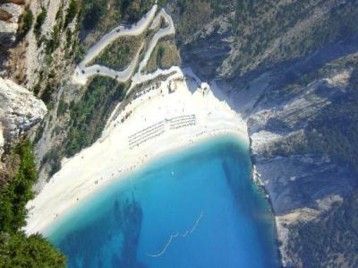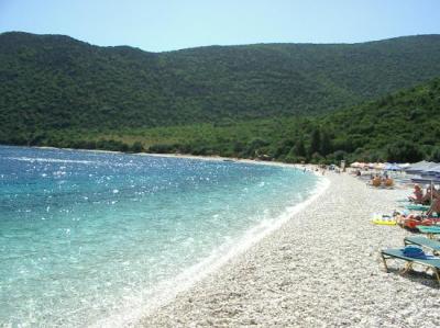 Πρόκειται για την πιο διάσημη παραλία του νησιού και μια από τις πιο γνωστές σε ολόκληρη την Ελλάδα. Δεν υπάρχει τουρίστας που να έχει κάνει διακοπές στην Κεφαλονιά και να μην έχει κάνει μπάνιο εκεί. Βρίσκεται περίπου 15 χιλιόμετρα από το Φισκάρδο. Χιλιάδες τουρίστες από Ελλάδα και εξωτερικό κατακλύζουν κάθε καλοκαίρι αυτή την μαγευτική παραλία που με τα τιρκουάζ νερά της, τα απόκρημνα βράχια της και τη λευκή της αμμουδιά συνθέτει έναν πίνακα ζωγραφικής.