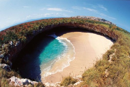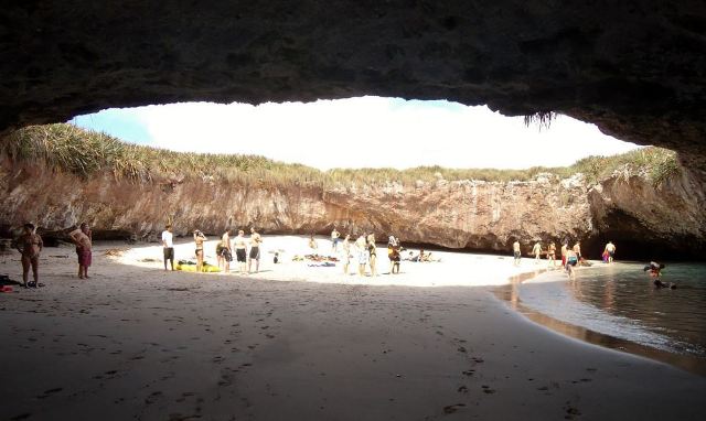 «Η παραλία πιθανότατα δημιουργήθηκε πριν τον Α’ Παγκόσμιο Πόλεμο όταν η κυβέρνηση του Μεξικού χρησιμοποιούσε τα νησιά σαν περιοχές σκοποβολής. Αυτοί οι ελεγχόμενοι βομβαρδισμοί έχουν δημιουργήσει πολυάριθμες σπηλιές και άλλους μοναδικούς βραχώδεις σχηματισμούς στα νησιά Marietas», εξηγεί ο Ventura Osorio που οργανώνει τουριστικές επισκέψεις στην «Κρυφή Παραλία».
