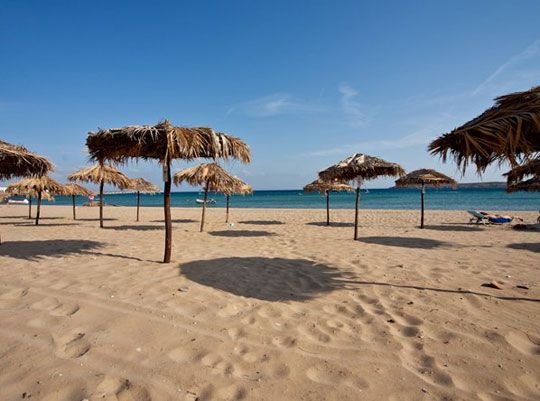 Λευκή άμμος σε μία αρκετά μεγάλη σε πλάτος παραλία. Από τις πιο όμορφες παραλίες της Πάρου μιας και τα νερά της έχουν κερδίσει Γαλάζια Σημαία. Ο αέρας που πνέει μόνιμα στην περιοχή την καθιστά ιδανική για θαλάσσια σπορ.