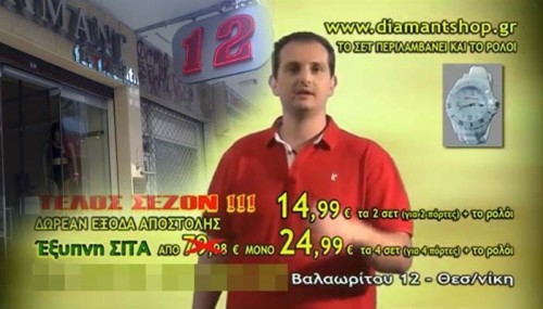 Αντικείμενο σχολιασμού έχει γίνει και το γεγονός πως η επιχείρησή του διαφημίζεται στα μεγάλα κανάλια πανελλαδικής εμβέλειας και μάλιστα με διαφημιστικά μηνύματα που ξεπερνούν τα τέσσερα λεπτά, την ώρα που η αγορά τηλεοπτικού χρόνου εξακολουθεί να παραμένει υψηλή. «Εδώ στα τοπικά κανάλια δεν μπορούμε να δώσουμε διαφήμιση γιατί το ποσό είναι μεγάλο φανταστείτε τι γίνεται στα μεγάλα» αναφέρει από την πλευρά του άλλος επιχειρηματίας.