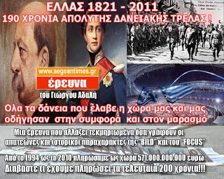 Φτάσαμε στο σημείο να αποπληρώνουμε δάνεια της πρώτης περιόδου της Επαναστάσεως του 1821 μέχρι και την προηγούμενη δεκαετία, και οι κατ όνομα σύμμαχοί μας να κερδίζουν τεράστια ποσά από χρεολύσια κάθε χρόνο, χωρίς να κάνουν απολύτως τίποτα!