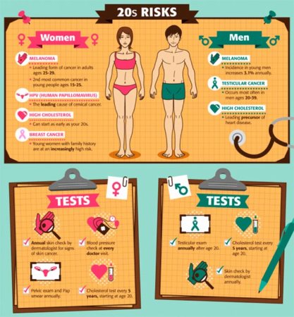 Η εμφάνιση των σοβαρών ασθενειών ανάλογα με το φύλο και την δεκαετία ζωής του ανθρώπου, παρουσιάζεται σε ένα πρακτικό εγχειρίδιο, αποτυπώνοντας τους «κινδύνους» από την ηλικία των 20 ετών έως και τα 70.