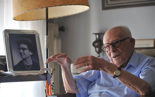 «Δεν ήλπιζα τόσο μακρά ζωή… Θυμάμαι– ξέρετε -τον κομήτη του Χάλεϊ, την εμφάνιση του Βενιζέλου, παρέστην – μικρό παιδί- σε ένοπλο συλλαλητήριο στην Κρήτη…», λέει ανήμερα των 107ων γενεθλίων του