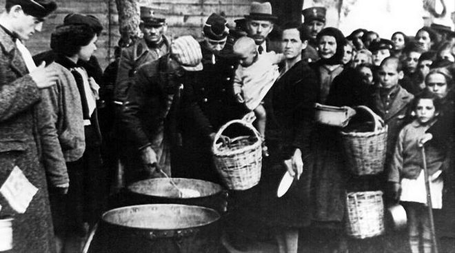 Άλλοι επιβίωναν με φέτες λασπώδους ψωμιού ή την λεγόμενη μπομπότα (χυλός από καλαμποκάλευρο), ενώ είναι εξακριβωμένο ότι υπήρχαν άνθρωποι και παιδιά ή ορφανά πολέμου, που σύχναζαν έξω από τις ταβέρνες που έπιναν και έτρωγαν οι Γερμανοί και όταν αυτοί ξερνούσαν, θρέφονταν από τον εμετό τους».
