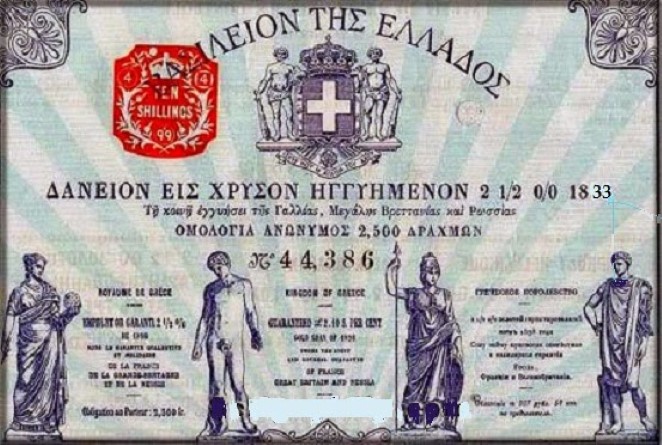 • Δύο δάνεια από την Αγγλία κατά τη διάρκεια της Ελληνικής Επανάστασης το 1824 και το 1825, συνολικά 2,8 εκ. λίρες στερλίνες