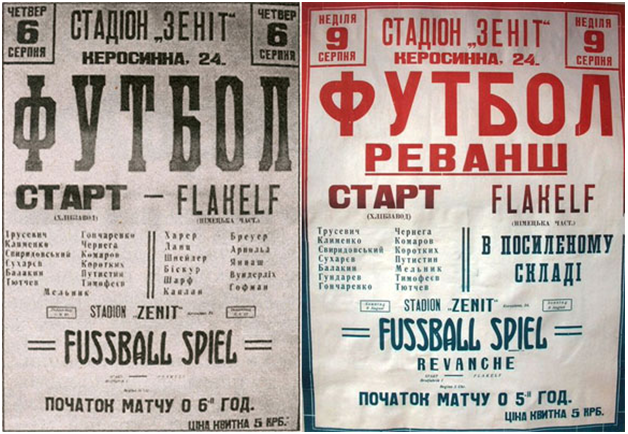 O αγώνας διεξήχθη στις 6 Αυγούστου 1942 και η Start επιβλήθηκε με σκορ 5-1. Ήταν ένα γερό χαστούκι για την υποτιθέμενη «Αρία Φυλή» που έχασε από τους υποταγμένους Ουκρανούς.