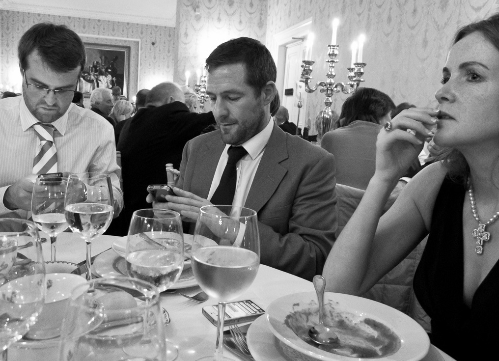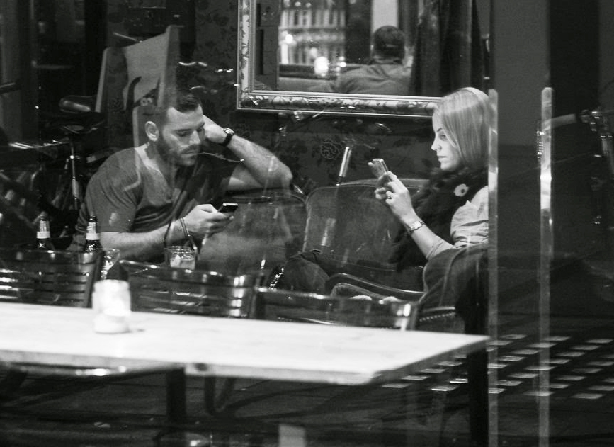 Πλέον δειπνούμε, ταξιδεύουμε, διασκεδάζουμε, συμμετέχουμε με τον εξής τρόπο: και μαζί, και μόνοι. Όταν τα έξυπνα κινητά και τα τάμπλετ δεν υπήρχαν, δεν είχαμε άλλη επιλογή παρά να μιλάμε με τους ανθρώπους που κάθονται δίπλα μας. Ή έστω να κοιτάμε σιωπηλοί τον ίδιο ορίζοντα μπροστά μας.