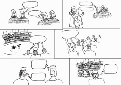Προσπαθήσαμε να αντιστρέψουμε τα πράγματα και ουσιαστικά στήσαμε μικρές ομάδες διερεύνησης, όπου παρείχαμε σε αυτές υλικό όπως πηγές, εικόνες, χειραπτικά υλικά. Αφήναμε τους μαθητές να αλληλεπιδρούν μεταξύ τους και με το υλικό που είχαν στα χέρια τους και να ανακαλύπτουν τη δική τους ιστορική αλήθεια την οποία και παρουσίαζαν στην ολομέλεια της τάξης. Με αυτόν τον τρόπο αλλά και μέσα από στοχευόμενους διαλόγους και διατύπωση ερωτήσεων ουσιαστικά οι ίδιοι οι μαθητές «έχτιζαν το μάθημα».