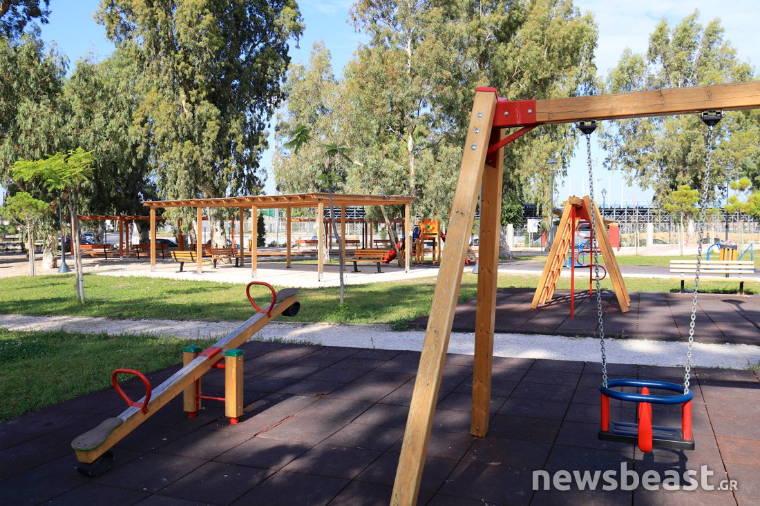 Ο χώρος σφύζει από παιδικές φωνές χαρούμενες. Παιδιά κάθε ηλικίας τρέχουν και γελούν ασταμάτητα. Η συγκεκριμένη παιδική χαρά είναι από τις μεγαλύτερες της Αθήνας, κυριολεκτικά μία ανάσα από τη θάλασσα.