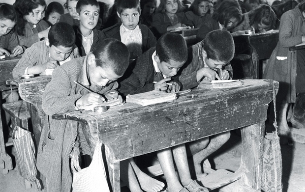Παιδιά που διαβάζουν. Φωτογραφία της Β. Παπαϊωάννου. Δεκαετία 1950. Αρχεία Φωτογραφίας του Μουσείου Μπενάκη