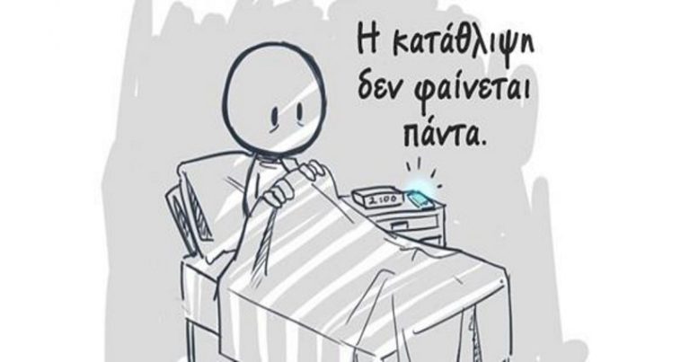 Τα παρακάτω σκίτσα δείχνουν με ρεαλισμό πώς είναι να έχει κάποιος κατάθλιψη, με ποιον τρόπο την κρύβει αλλά και πως δεν είναι δυνατόν να μην αποκαλυφθεί κάποια στιγμή. Αν δεις τον εαυτό σου ή κάποιον δικό σου άνθρωπο να «καθρεφτίζεται» σε κάποια από αυτά δεν είναι αργά να ζητήσεις βοήθεια. Γιατί πάντα υπάρχει κάποιος που θα σε καταλάβει και που θα σταθεί δίπλα σου.
