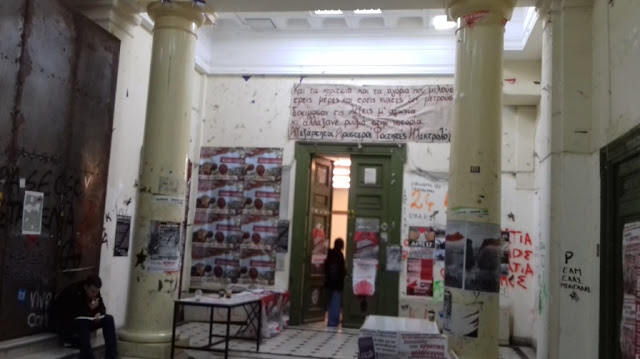 Από την άλλη πλευρά, στην είσοδο του κτηρίου του Πολυτεχνείου, έτοιμοι… Με τις κουκούλες τους, τα καδρόνια τους, τις πέτρες τους…Μαυροντυμένοι και ετοιμοπόλεμοι… Έτοιμοι να ξεκινήσουν την πορεία… Η οποία όλοι ξέρουμε πως θα καταλήξει…
