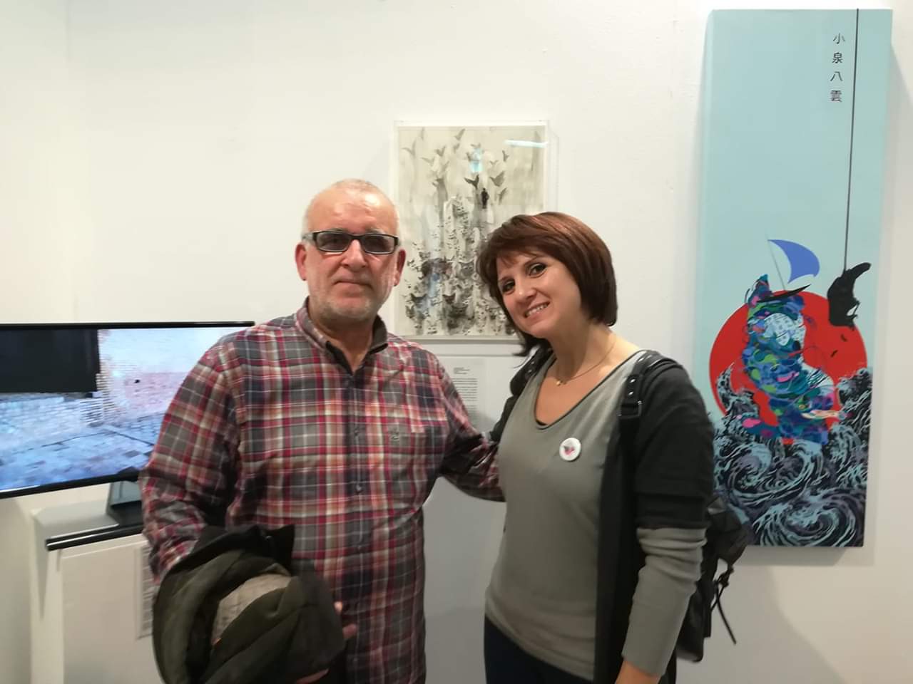 | Η κυρία Ειρήνη Μπάκα με τον κύριο Γιώργο Τσακίρη λίγο πριν την εκπνοή της παρουσίασης του project Yakumo Koizumi |