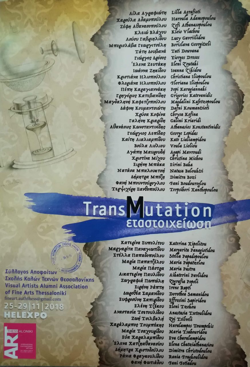 Η Αλχημεία στο πέρασμα των αιώνων, ασκούσε και συνεχίζει να ασκεί ιδιαίτερη γοητεία στους καλλιτέχνες. Στη σύγχρονη Τέχνη τα σύμβολα και η έννοια της Αλχημείας χρησιμοποιούνται αλληγορικά, ως έναυσμα για αφηρημένες συνθέσεις ή τίτλους έργων. Η κοινή συνισταμένη της πολύχρονης αυτής σχέσης μεταξύ Καλλιτεχνών και Αλχημείας φαίνεται πως είναι ο παραλληλισμός της καλλιτεχνικής δημιουργίας με τις αλχημικές πρακτικές και ιδιαίτερα με τη Μεταστοιχείωση. Για τον καλλιτέχνη, η μεταστοιχείωση έγκειται στη μετατροπή του υλικού σε πνευματικό, του απλού και ενίοτε ευτελούς σε πολύτιμο. Έτσι, οι χρωστικές ουσίες, τα υλικά και οι τεχνικές είναι ότι ήταν το μέταλλο για έναν Αλχημιστή. Οι 48 καλλιτέχνες, απόφοιτοι της Σχολής Καλών Τεχνών και μέλη του Συλλόγου Αποφοίτων της Σ. Κ. Τ., παρουσιάζουν μια εικαστική εγκατάσταση, ένα «Chamber of Curiosities» μοναδικών και ανεξήγητων αντικειμένων.