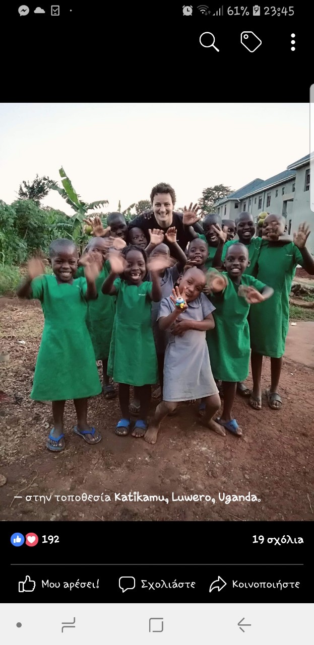 “Στον ένα χρόνο ιδρύσεως της MyRafiki έχουμε δημιουργήσει μια κατασκήνωση μορφωτικού και ψυχαγωγικού χαρακτήρα στην νοτιοδυτική Ουγκάντα και συγκεκριμένα στο χωριό Ρουμπάαρε, 60 χλμ από τα σύνορα της Ρουάντα. Σε μια νεοσύστατη ορθόδοξη ενορία της Παναγίας της Μυρτιδιώτισσας του πατρός Αριστοτέλη, για πρώτη φορά 115 παιδιά ηλικίας 4 έως 20 ετών ανεξαρτήτου θρησκεύματος και φυλής, είχαν την δυνατότητα να ζήσουν την πρώτη τους κατασκηνωτική εμπειρία δημιουργικής απασχόλησης. Το πρόγραμμα περιελάμβανε δημιουργικό παιχνίδι, ξεχωριστές κατασκευές, τραγούδι και χορό, εκπαιδευτικές δράσεις και κατήχηση από τον πατέρα Αριστοτέλη”, μας περιγράφει η Ευδοκία τονίζοντας ότι ομάδες συζητήσεων συνέθεσαν το «πολύχρωμο» παζλ γνώσης και πρόληψης σε ζητήματα υγείας (προσωπική υγιεινή, πρώτες βοήθειες) καθώς και ψυχοκοινωνικής στήριξης (συνεργασία, αλληλεγγύη, ενδυνάμωση).