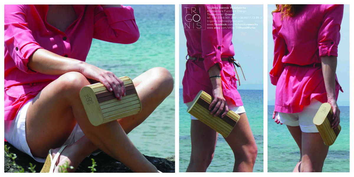 Οι ξύλινες τσάντες προέκυψαν τον Μάιο του 2014, σε μία προσπάθεια πειραματισμών μέσα από μία ιδέα να αναδείξει το ξύλο σαν βασικό υλικό σε ξένα για αυτόν μέχρι τότε αντικείμενα. «Η ιδέα πίσω από το ξύλινο αυτό αξεσουάρ, ήταν να χρησιμοποιήσω το λεξιλόγιο της κλασσικής επιπλοποιίας σε κάτι φορητό και εμπορεύσιμο για την μόδα, παρομοιάζοντάς το με ένα καλό χειροποίητο έπιπλο», αναφέρει ο Γιάννης Τριγώνης μιλώντας στο Vaterlo και στη Μαρία Σαμουρκασίδου και επισημαίνει ότι οι ξύλινες τσάντες σαν αντικείμενο, αποτελούν για τον ίδιο ως αρχιτέκτονα-επιπλοποιό, τη δημιουργία ενός επίπλου-αξεσουάρ, χρήσιμο, λειτουργικό, όμορφο και απλό για καθημερινή χρήση, ή απλά διακοσμητικό αντικείμενο πόθου. Ένα έπιπλο δηλαδή σε μικρογραφία,όπως ο ίδιος λέει χαρακτηριστικά.