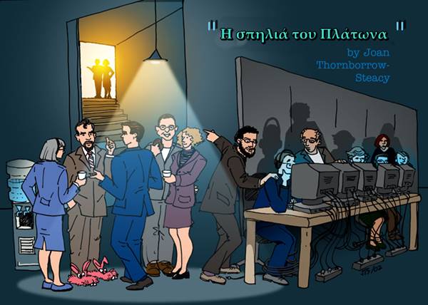 Η πιο σύγχρονη παραλλαγή της σπηλιάς του Πλάτωνα είναι το facebook και τα άλλα μέσα κοινωνικής δικτύωσης. Οι δεσμώτες του facebook είναι καθηλωμένοι κατά μόνας σε μια σκοτεινή τρύπα, την οθόνη του υπολογιστή στην οποία ζουν οι φίλοι και οι συγγενείς τους, με το περίεργο όνομα likes. Μήπως όμως η σπηλιά του facebook είναι πιο σκοτεινή και αδυσώπητη από τη σπηλιά του Πλάτωνα;