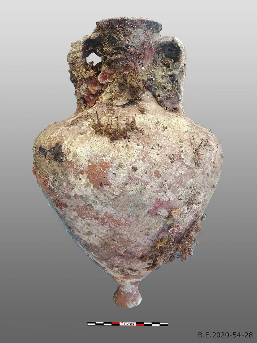 Όπως μεταδίδει το ΑΜΠΕ, επικαλούμενο το υπουργείο Πολιτισμού, «το πλέον αξιόλογο εύρημα κατά τη δεύτερη ερευνητική περίοδο αποτελεί ένα ναυάγιο της Ρωμαϊκής περιόδου, το φορτίο του οποίου είναι μεικτό και απαρτίζεται από αμφορείς της ευρύτερης κατηγορίας των αμφορέων “Dressel 20”, που αποτελούν αμφορείς ελαίου και κατασκευάζονται σε κεραμικά εργαστήρια της Ισπανίας, στην περιοχή του Γκουαδαλκιβίρ (1ος-3ος αιώνα μ.Χ.), καθώς και αμφορείς της κατηγορίας “Africana I”, η παραγωγή των οποίων περιορίζεται στα κεραμικά εργαστήρια της Africa Proconsularis, και πιο συγκεκριμένα στην περιοχή της σημερινής Τυνησίας (2ος-3ος αι. μ.Χ.). Με βάση την κεραμική που περισυλλέχθηκε και ανελκύστηκε δειγματοληπτικά, το ναυάγιο μπορεί να χρονολογηθεί μεταξύ του 2ου και 3ου αιώνα μ.Χ.».